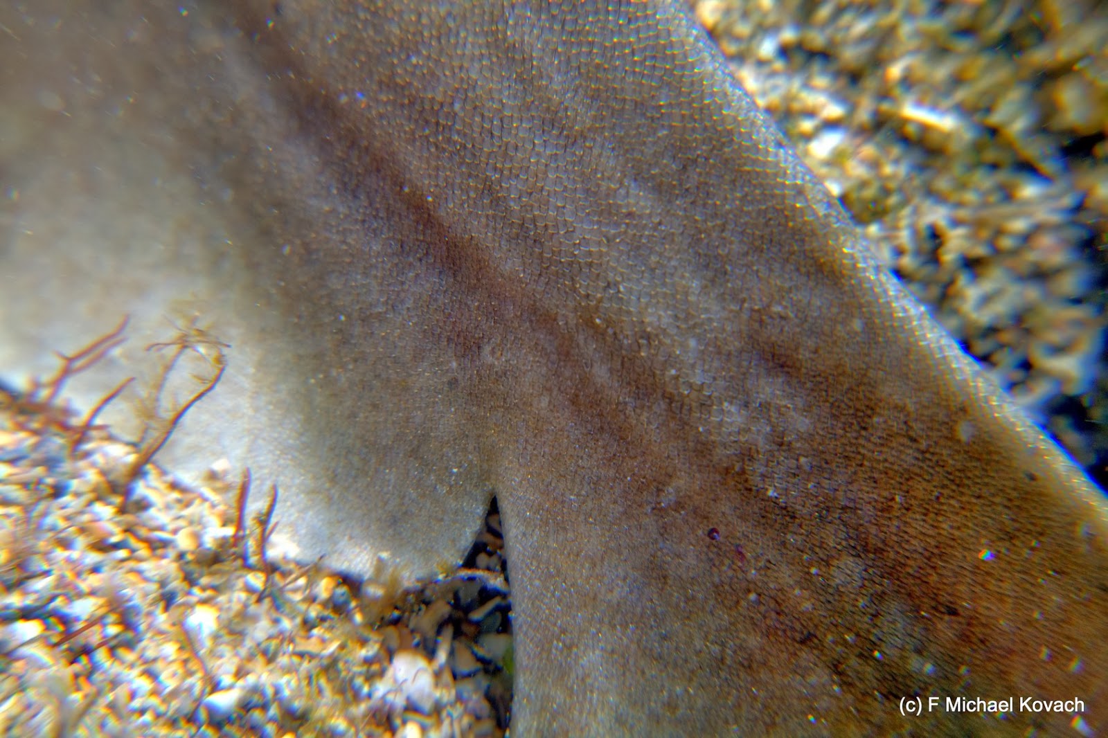 I got several shots of this Yellow Sand Ray, but I really liked this one. We had descended over the algae and swam out underwater and this little ray was cruising the algae.